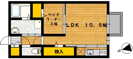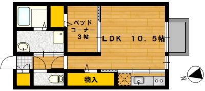 部屋の広さ 洋(ベッドコーナー)3帖・LDK10.5帖 対象階数 2階建 1階