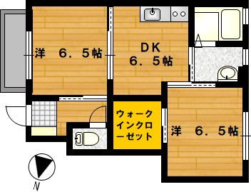 部屋の広さ 洋6.5帖×2・DK6.5帖 対象階数 2階建 1階