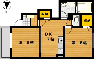 部屋の広さ | 洋6帖×2・DK7帖 | 対象階数 | 2階建 1階 | |