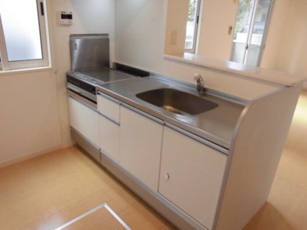 一坪風呂に浴室乾燥、洗髪洗面化粧台、室内物干しなど生活しやすい設備が多くついています。キッチンは人気の対面キッチン!