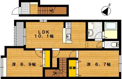部屋の広さ 洋6.7帖・洋6.9帖・LDK10.1帖 対象階数 2階建 2階