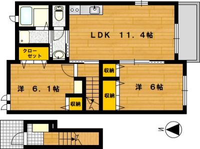 部屋の広さ | 洋6.1帖・洋6帖・LDK11.4帖 | 対象階数 | 2階建 2階 | |