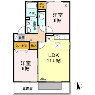 部屋の広さ | 洋6帖×2・LDK11.5帖 | 対象階数 | 2階建 1階 | |
