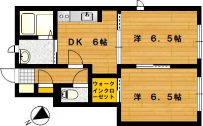部屋の広さ | 洋6.5帖×2・DK6帖 | 対象階数 | 2階建 1階 | |