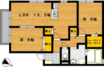 部屋の広さ 洋6帖×2・LDK13.5帖 対象階数 2階建 1階