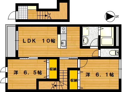 部屋の広さ | 洋室6.5帖・洋6.1帖・LDK10帖 | 対象階数 | 2階建 2階 | |
