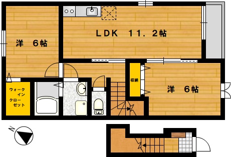部屋の広さ | LDK11.2帖・洋6帖×2 | 対象階数 | 2階建 2階 | |
