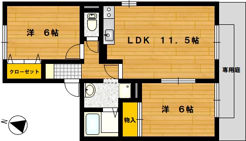 部屋の広さ | 洋6帖×2・LDK11.5帖 | 対象階数 | 2階建 1階 | |