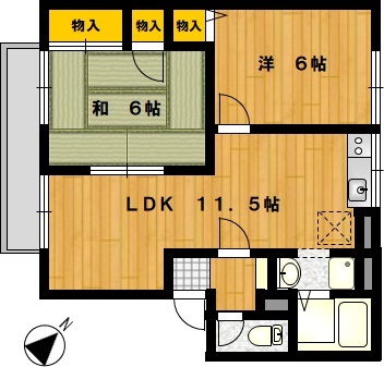 部屋の広さ LDK11.5帖・洋6帖・和6帖 対象階数 2階建 2階