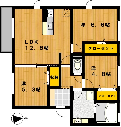 部屋の広さ | LDK12.6帖・洋6.6帖・洋5.3帖・洋4.5帖 | 対象階数 | 3階建 3階 | |