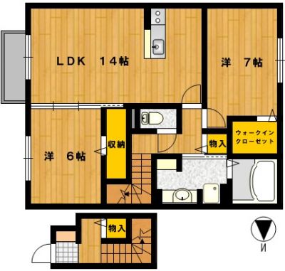 部屋の広さ | 洋7帖・洋6帖・LDK14帖 | 対象階数 | 2階建 2階 | |