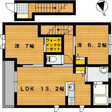 部屋の広さ 洋6.2帖・洋7帖・LDK13.2帖 対象階数 2階建 2階