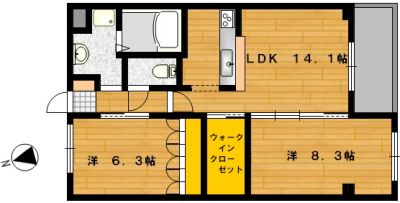 部屋の広さ | 洋6.3帖・洋8.3帖・S2.6帖・LDK14.1帖 | 対象階数 | 3階建 1階 | |