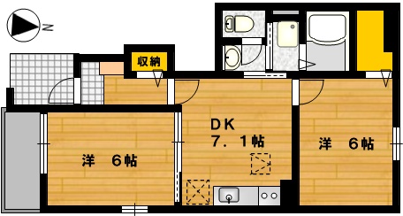 部屋の広さ 洋6帖×2・DK7.1帖 対象階数 2階建 1階