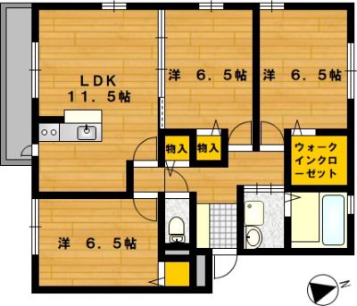 部屋の広さ | 洋6帖・洋6.5帖×2・LDK11.5帖 | 対象階数 | 2階建 2階 | |