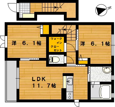 部屋の広さ 洋6.1帖×2・LDK11.7帖 対象階数 2階建 2階