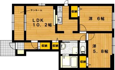 部屋の広さ 洋6帖・洋5.8帖・LDK10.2帖 対象階数 2階建 1階