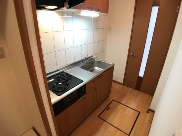 キッチンは廊下にあり、洋室とは別々になっていますので料理のにおいが室内に入ってきにくいという利点があります。