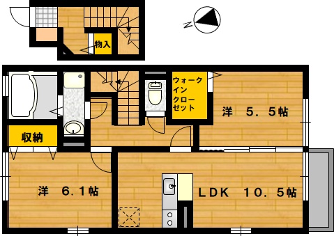 部屋の広さ 洋6.1帖・洋5.5帖・LDK10.5帖 対象階数 2階建 2階