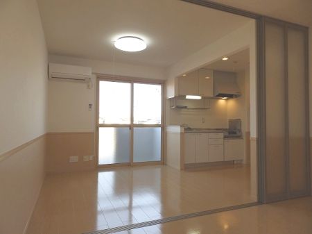 キッチン , ガスコンロ , 浴室乾燥機 , 洗髪洗面化粧台 , 水洗トイレ(洋) , 温水洗浄暖房便座 , 給湯 ,  TVモニターホン , 照明器具 , CATV , エアコン2台付 ,  ベランダ/バルコニー , カードキー , ペアガラス , 洗濯機置場 , 室内物干し , プロパンガス ,