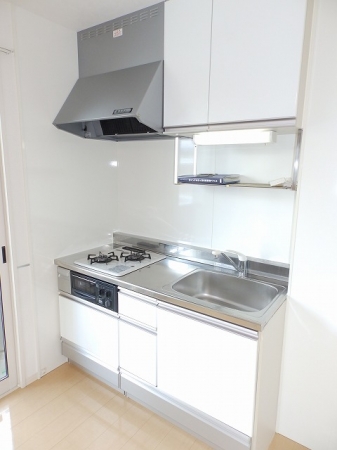システムキッチン , ガスコンロ , 床下収納 , 浴室乾燥機 , 洗髪洗面化粧台 , 水洗トイレ(洋) , 温水洗浄暖房便座 , 給湯 ,  エアコン , TVモニターホン , 照明器具 ,  ベランダ/バルコニー , カードキー , 洗濯機置場 , プロパンガス ,