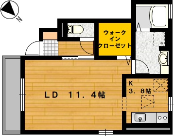 見せたくないキッチンはサッと隠すこともできますね。収納も広いウォークインクローゼットが付いているので、お部屋はしっかり片付きそうです。