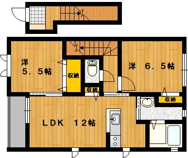 部屋の広さ 洋6.5帖・洋5.5帖・LDK12帖 対象階数 2階建 2階