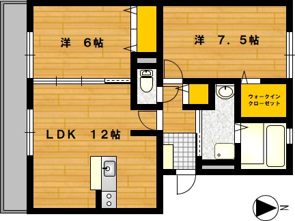 部屋の広さ 洋6帖・洋7.5帖・LDK12帖 対象階数 3階建 3階