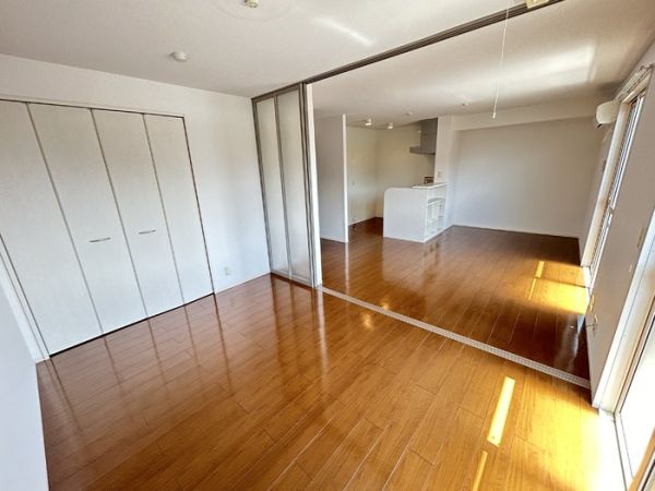 LDKと洋室の間仕切りをとって約18帖もの広々ゆったりとした空間を作り出すことも可能なこちらの物件。