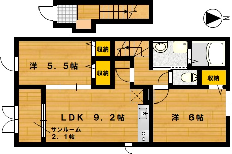 部屋の広さ | 洋6帖・洋5.5帖・LDK9.2帖 | 対象階数 | 2階建 2階 | |