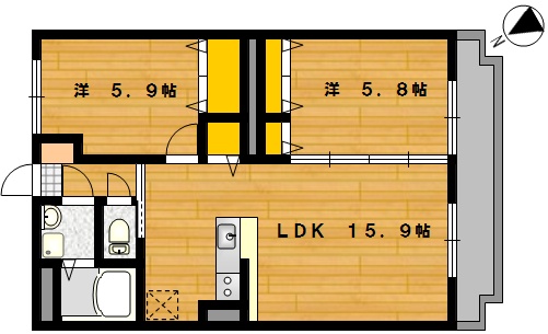 部屋の広さ 洋5.9帖・洋5.8帖・LDK15.9帖 対象階数 3階建 3階