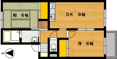 部屋の広さ | 洋6帖・和6帖・DK8帖 | 対象階数 | 2階建 2階 | |