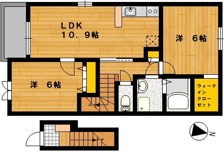 部屋の広さ | LDK10.9帖・洋6帖×2 | 対象階数 | 2階建 2階 | |