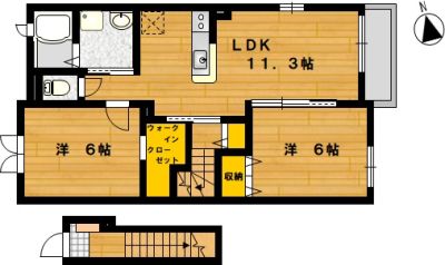 部屋の広さ | 洋6帖×2・LDK11.3帖 | 対象階数 | 2階建 2階 | |