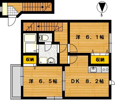 部屋の広さ | 洋6.5帖・洋6.1帖・DK8.2帖 | 対象階数 | 2階建 2階 | |