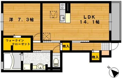 部屋の広さ | LDK14.1帖・洋7.3帖 | 対象階数 | 2階建 1階 | |