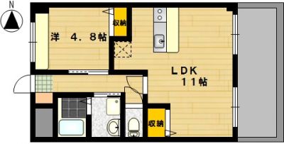 部屋の広さ | LDK11帖・洋4.8帖 | 対象階数 | 2階建 2階 | |