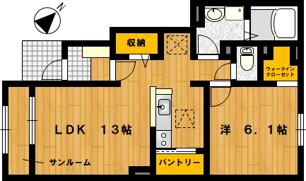 部屋の広さ LDK13帖・洋6.1帖 対象階数 2階建 1階