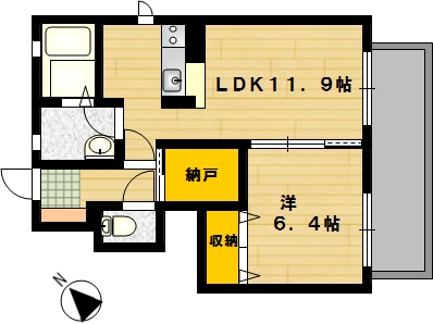 部屋の広さ LDK11.9帖・洋6.4帖 対象階数 2階建 1階