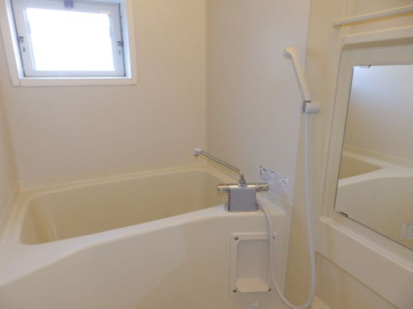 そのお風呂は、浴室乾燥機付きですので、雨の日でもちょっとした洗濯物なら干せて助かります。