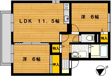 部屋の広さ 洋6帖×2・LDK11.5帖 対象階数 2階建 2階