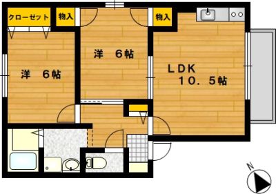 部屋の広さ 洋6帖×2・LDK10.5帖 対象階数 2階建 1階