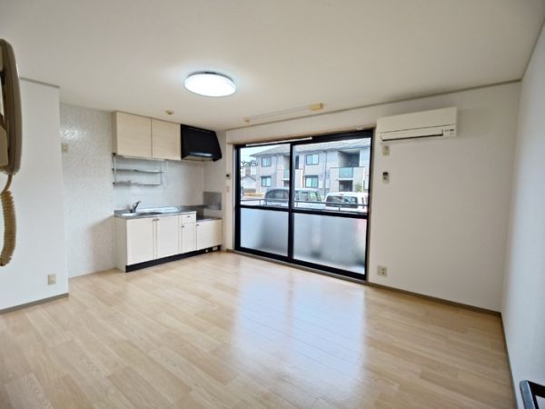 エアコン2台付、室内物干し設置済です。
