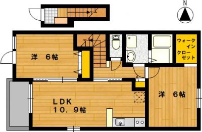 部屋の広さ LDK10.9帖・洋6帖×2 対象階数 2階建 2階