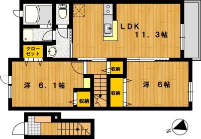部屋の広さ LDK11.3帖・洋6帖・洋6.1帖 対象階数 2階建 2階