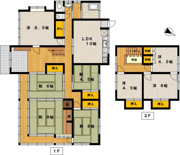 | 建物 ① | 面積 | 1F:144.58 ㎡ 2F:40.71 ㎡ 延床面積:185.29 ㎡ |